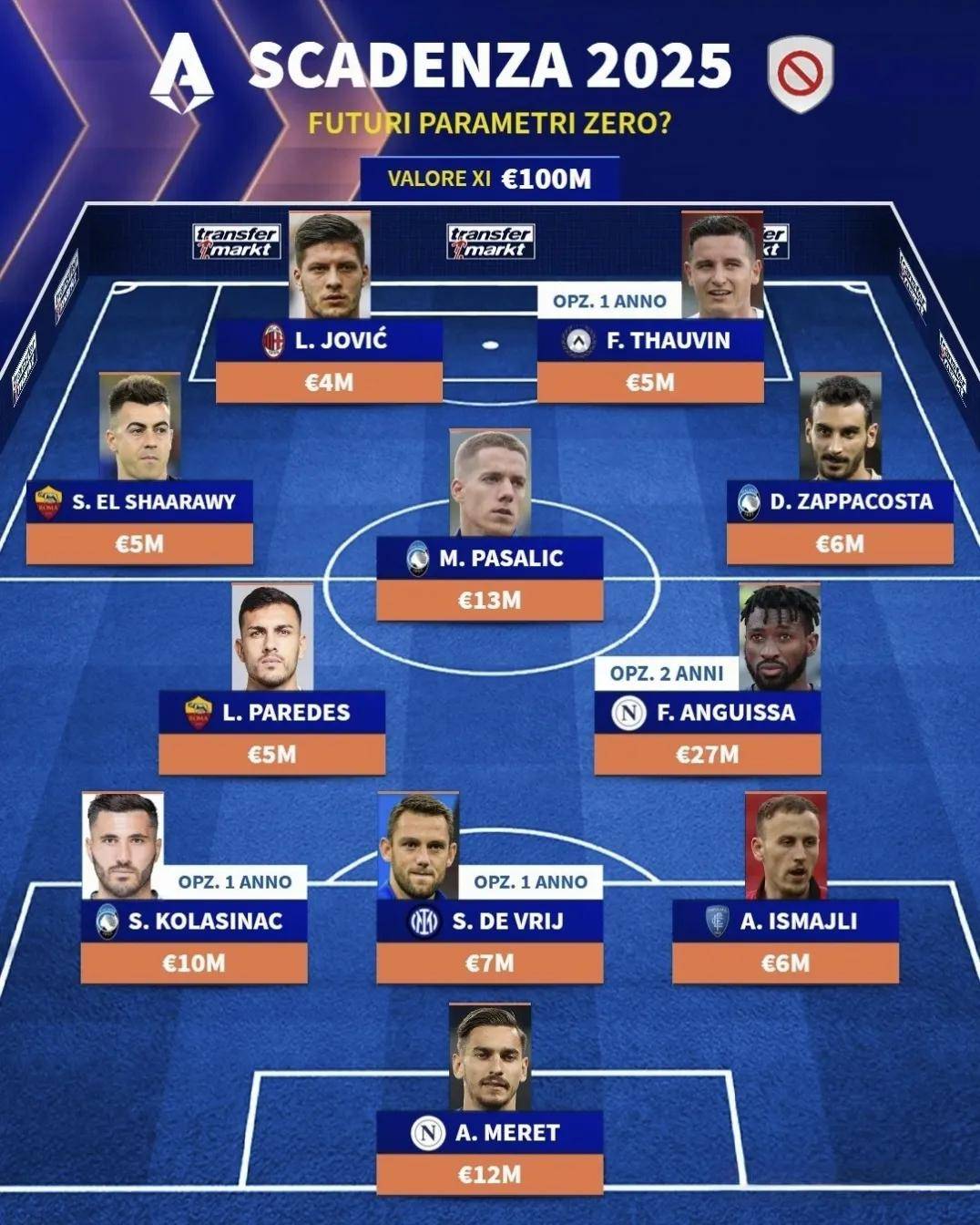 意甲联赛1亿欧元阵容,今年夏天全部可以免签