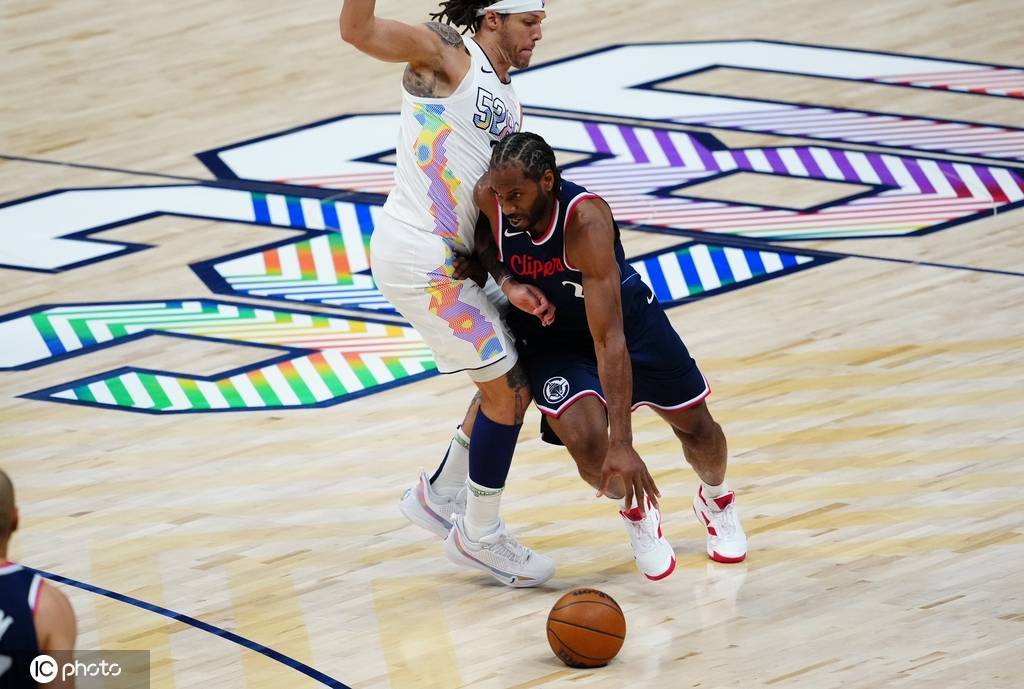 哈登的情况则更为糟糕,他三节过后得分还没有上双,组织串联的灵感也丢掉了大半,他的外线三分迟迟不开,甚至最稳定的罚球也出现了多次不中的状况。于是,整场球,快船的进攻都陷入半瘫痪的态势,小卡甚至在哈登传球不顺畅的情况下,被迫分担起串联重任(全场他助攻上双)……