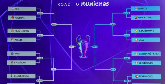 这导致了上下半区出现了几乎相似的情形。如果皇家马德里和巴塞罗那能够先后淘汰马德里竞技和本菲卡,那么在八强赛中他们有可能分别遇到阿森纳和多特蒙德。